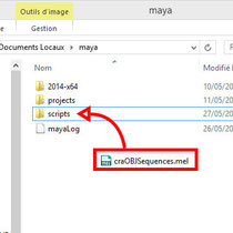 1/ Download « craOBJSequences.mel » and copy it to your Maya script folder found in « mydocument », start Maya.