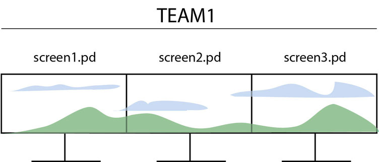 Very simple touch interaction : A Pen/Touch Tablet is split into 3 zones. Every zone activate animation in one of the screen.