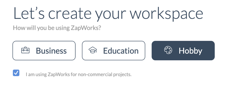 Puis cochez la case “I am using zapworks for personal use only and not commercial” comme l'image ci contre: