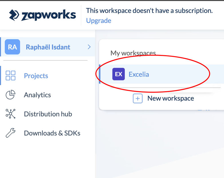 3 - Go to the "Excelia" Workspace to use the license, (see the picture).