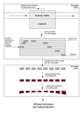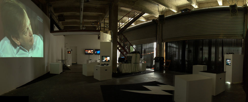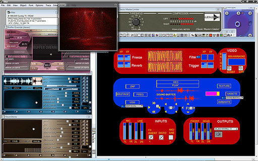 Dispositif de spectacle live pour la performance Soirée youtube chez Aby Warburg - kontact sonore 2011. Il permet de gérer simultanément: